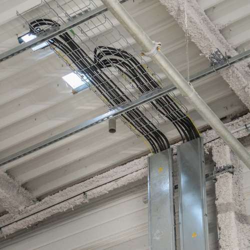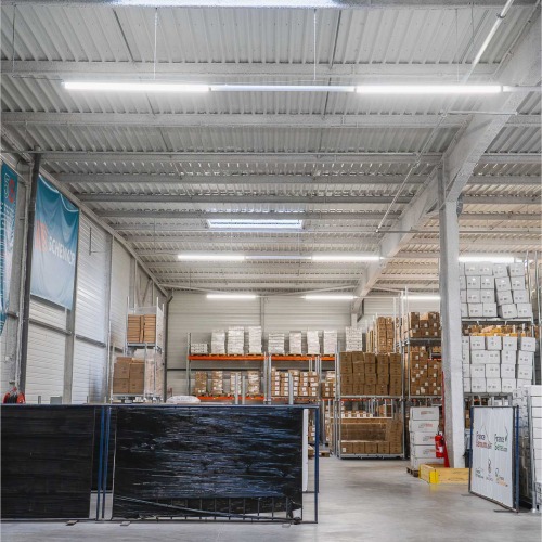 Nous avons assuré l’ensemble des lots plomberie, électricité, climatisation et sécurité incendie adressable, avec des installations pensées pour répondre aux exigences d’un bâtiment industriel de grande surface. Chaque réseau, chaque gaine technique et chaque arrivée électrique a été implanté avec précision afin de s’intégrer efficacement dans un volume dépassant les 10 000 m².