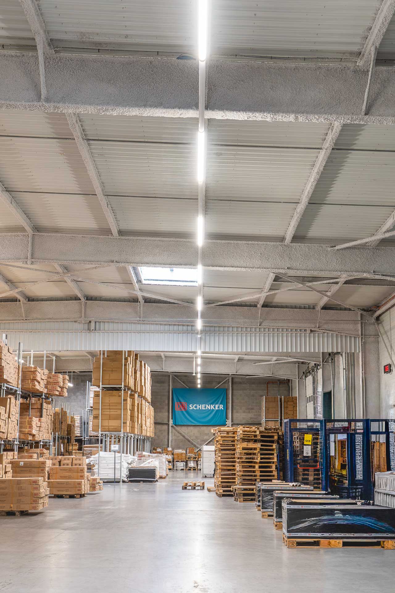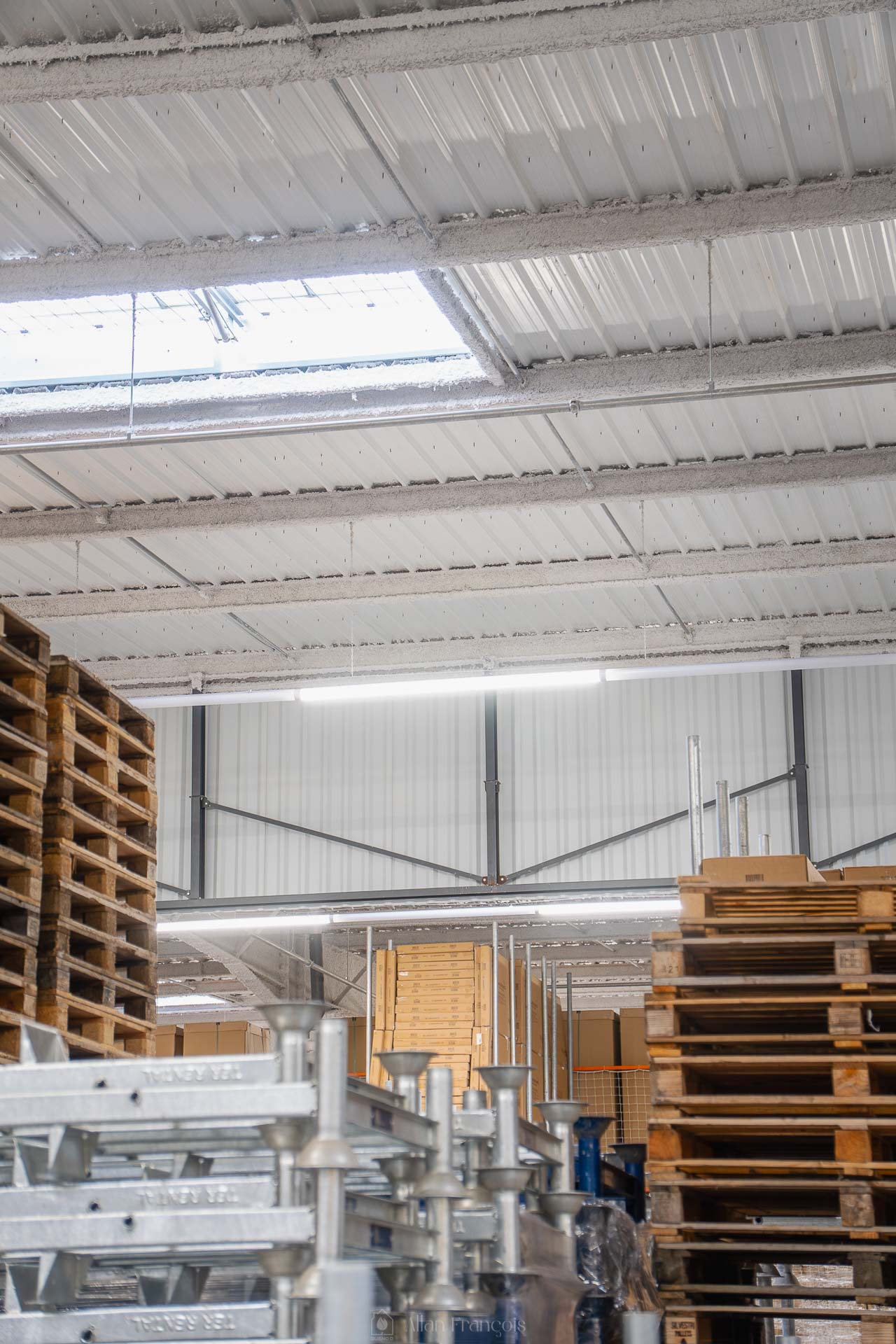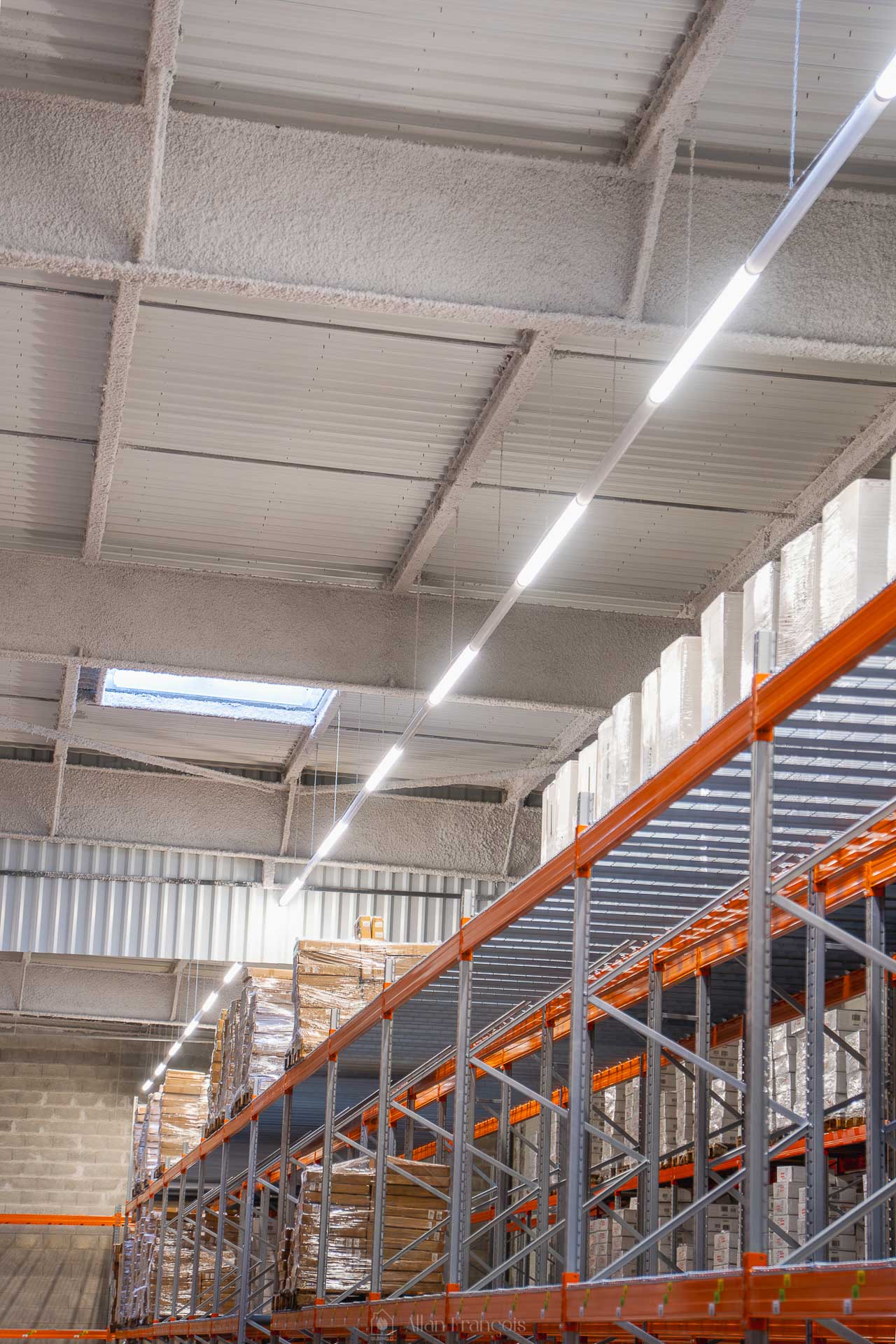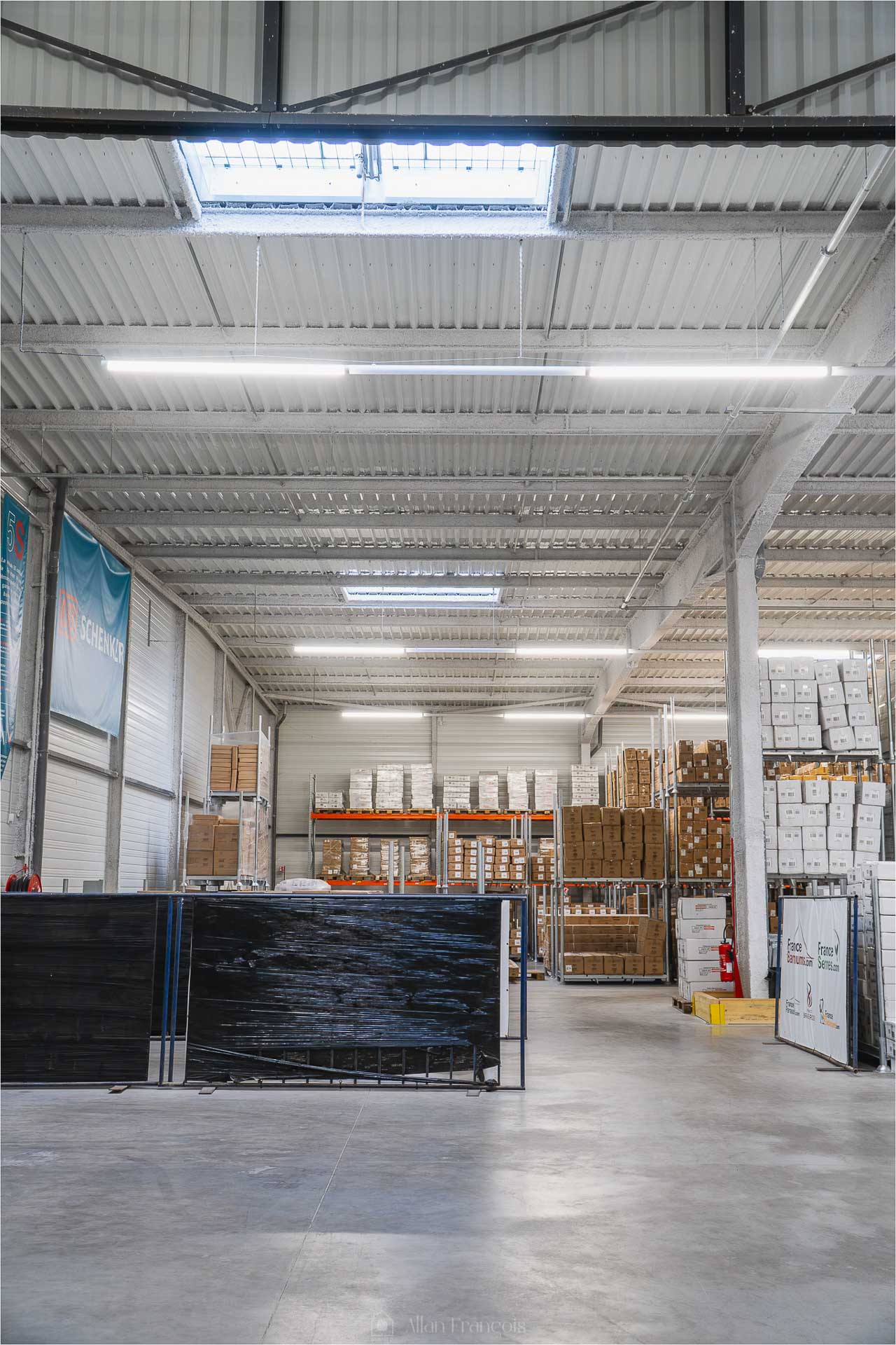Nous avons assuré l’ensemble des lots plomberie, électricité, climatisation et sécurité incendie adressable, avec des installations pensées pour répondre aux exigences d’un bâtiment industriel de grande surface. Chaque réseau, chaque gaine technique et chaque arrivée électrique a été implanté avec précision afin de s’intégrer efficacement dans un volume dépassant les 10 000 m².