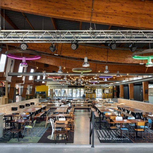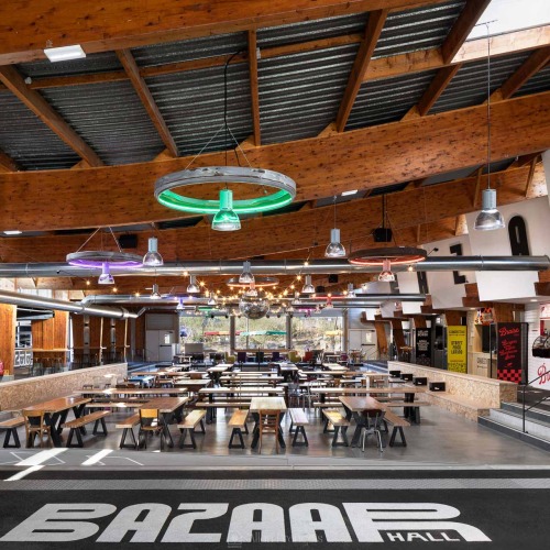 Le Bazaar Hall, situé à Saint-Brieuc, est un lieu atypique et ambitieux qui a nécessité près de six mois de travail pour donner vie à un espace à l’identité forte et assumée. Un projet hors normes, pensé pour offrir une ambiance singulière et immersive.