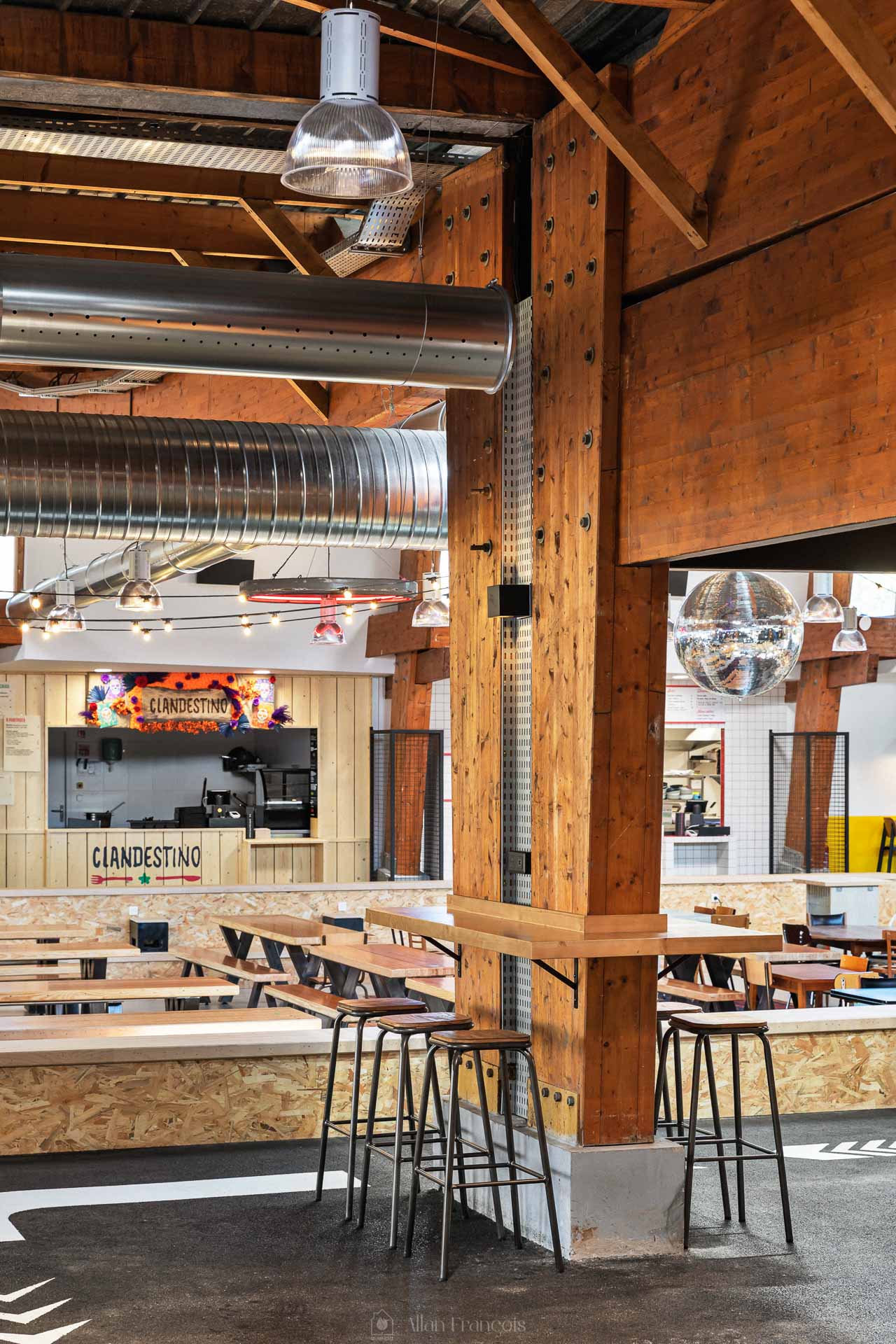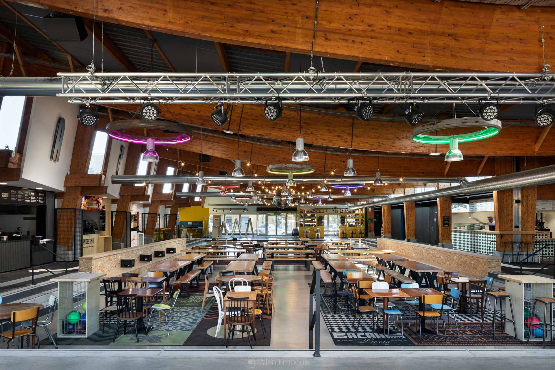 Le Bazaar Hall, situé à Saint-Brieuc, est un lieu atypique et ambitieux qui a nécessité près de six mois de travail pour donner vie à un espace à l’identité forte et assumée. Un projet hors normes, pensé pour offrir une ambiance singulière et immersive.