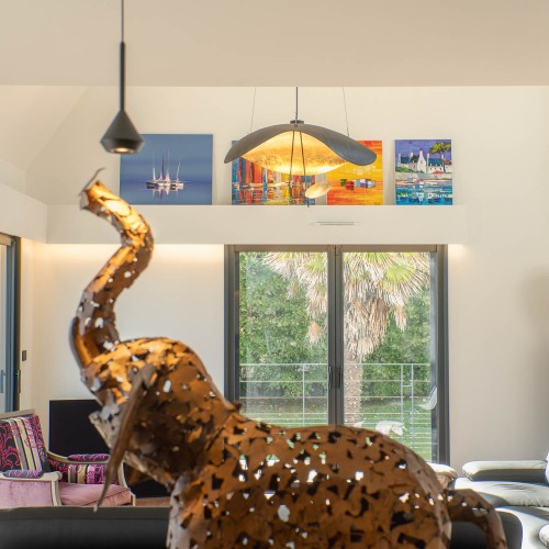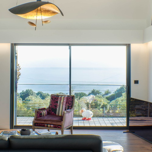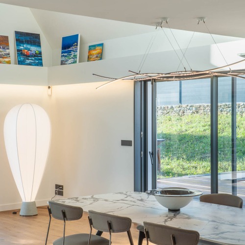 Située face à un panorama maritime exceptionnel, cette maison contemporaine a été pensée pour offrir lumière, espace et confort. Les grandes ouvertures, les matériaux chaleureux et les éléments décoratifs forts définissent une atmosphère que nos installations techniques accompagnent avec discrétion.