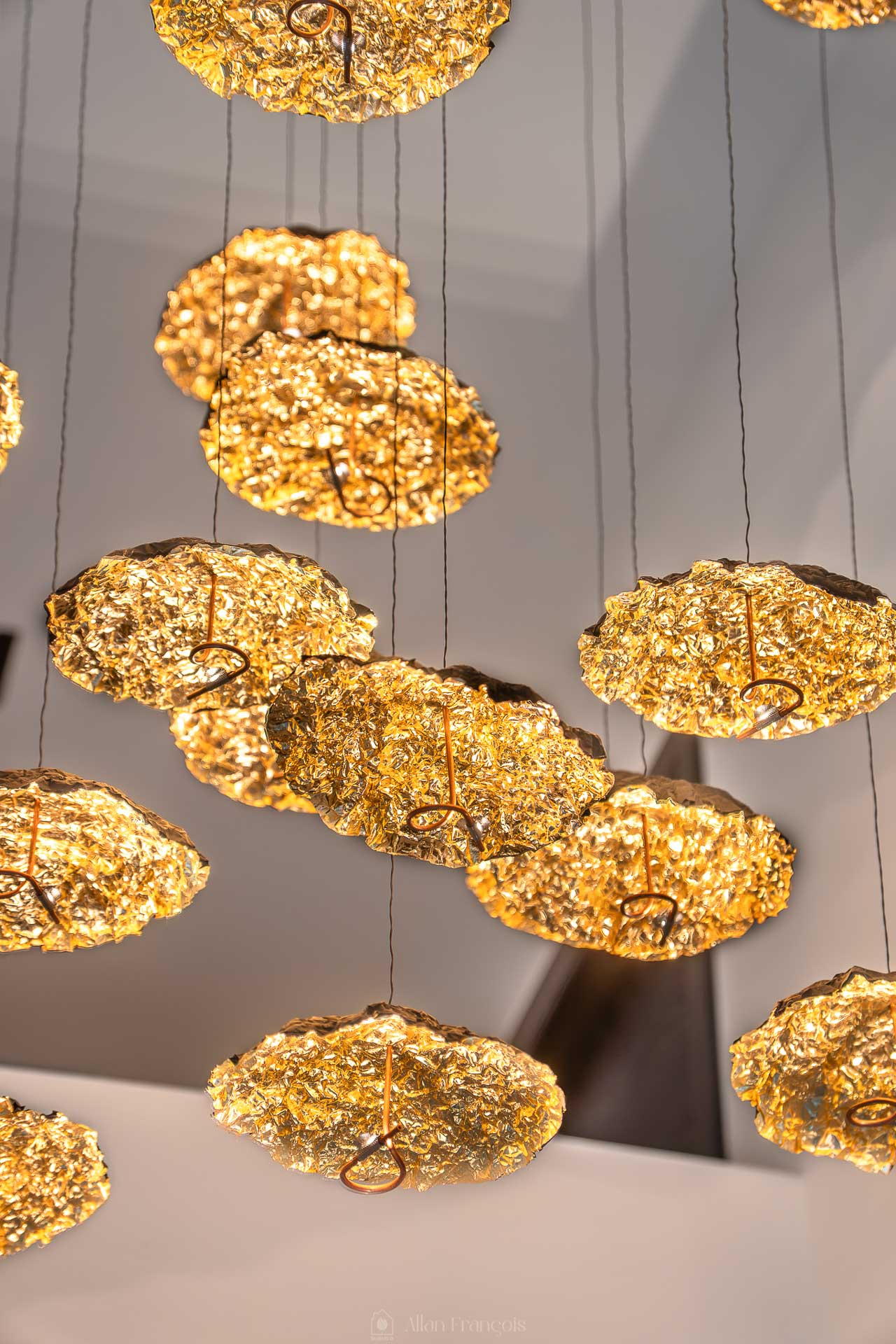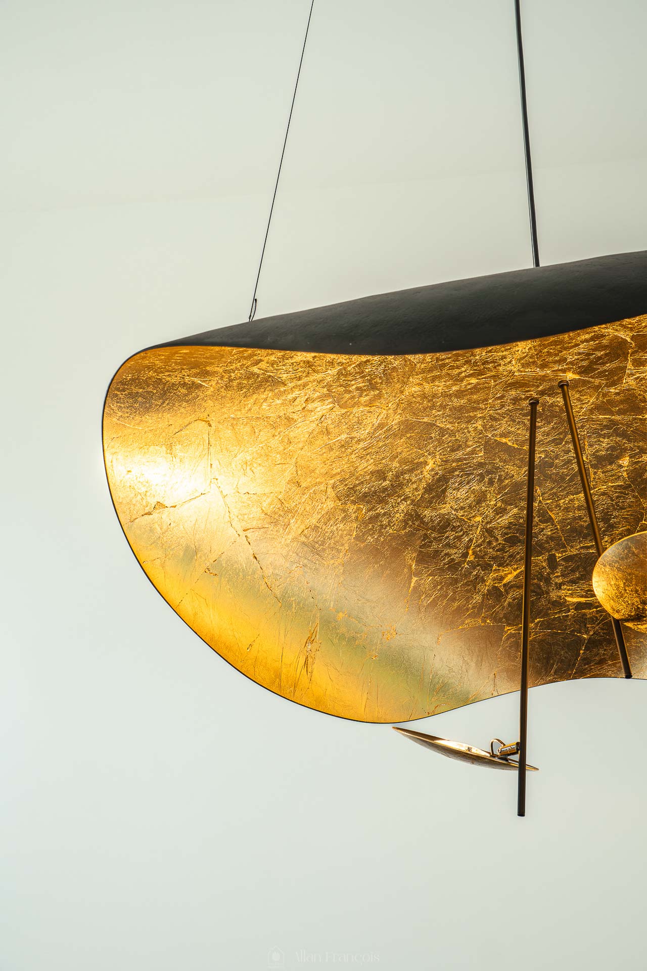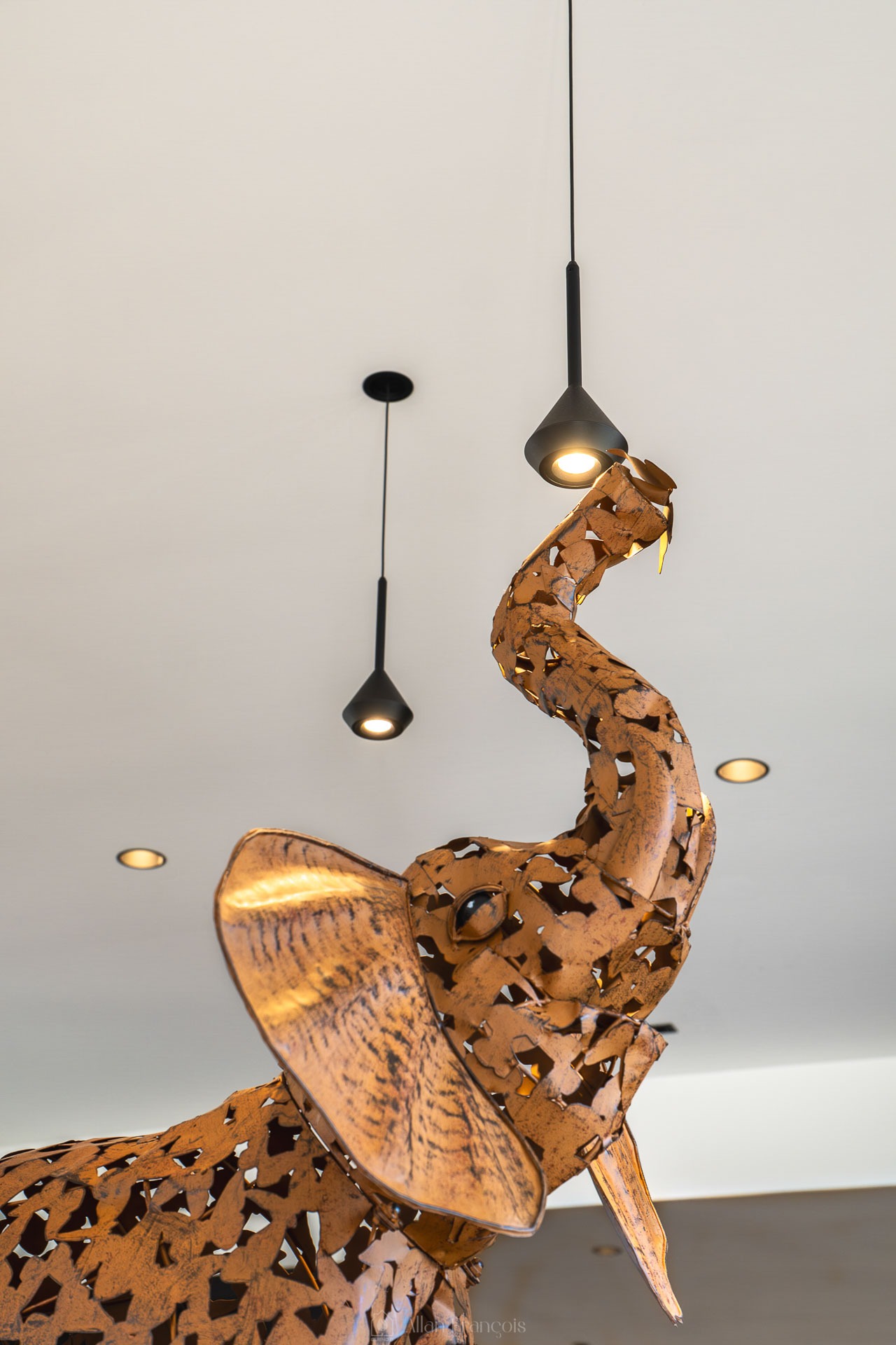 L’éclairage occupe une place centrale dans cette réalisation. Nous avons installé et raccordé différents types de luminaires afin de créer des ambiances variées et maîtrisées : rétro-éclairages intégrés dans les agencements, suspensions sculpturales, éclairages linéaires au-dessus des espaces de vie et LED intégrées dans l’escalier. Chaque point lumineux a été pensé pour s’intégrer parfaitement aux volumes et renforcer l’identité contemporaine de la maison.