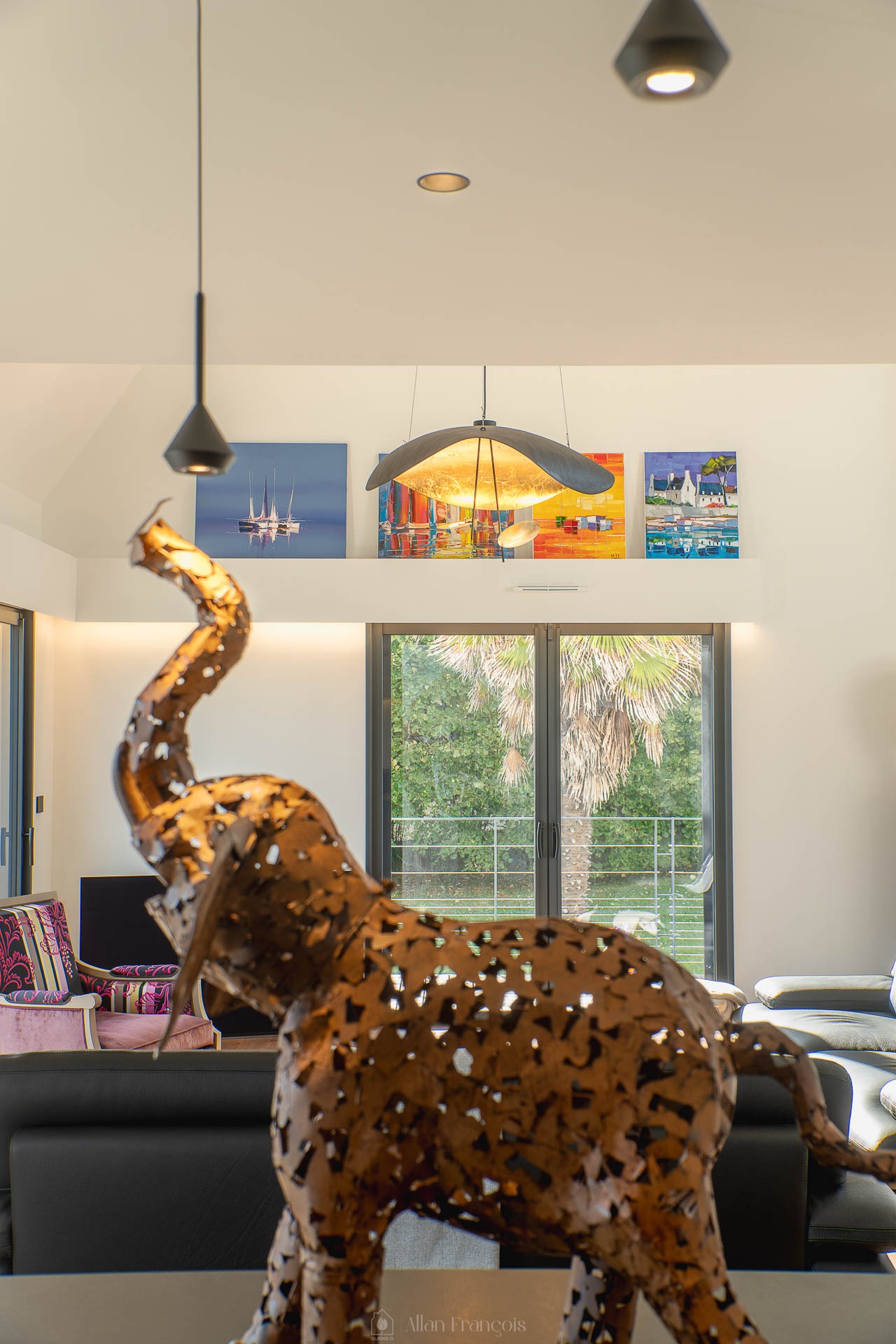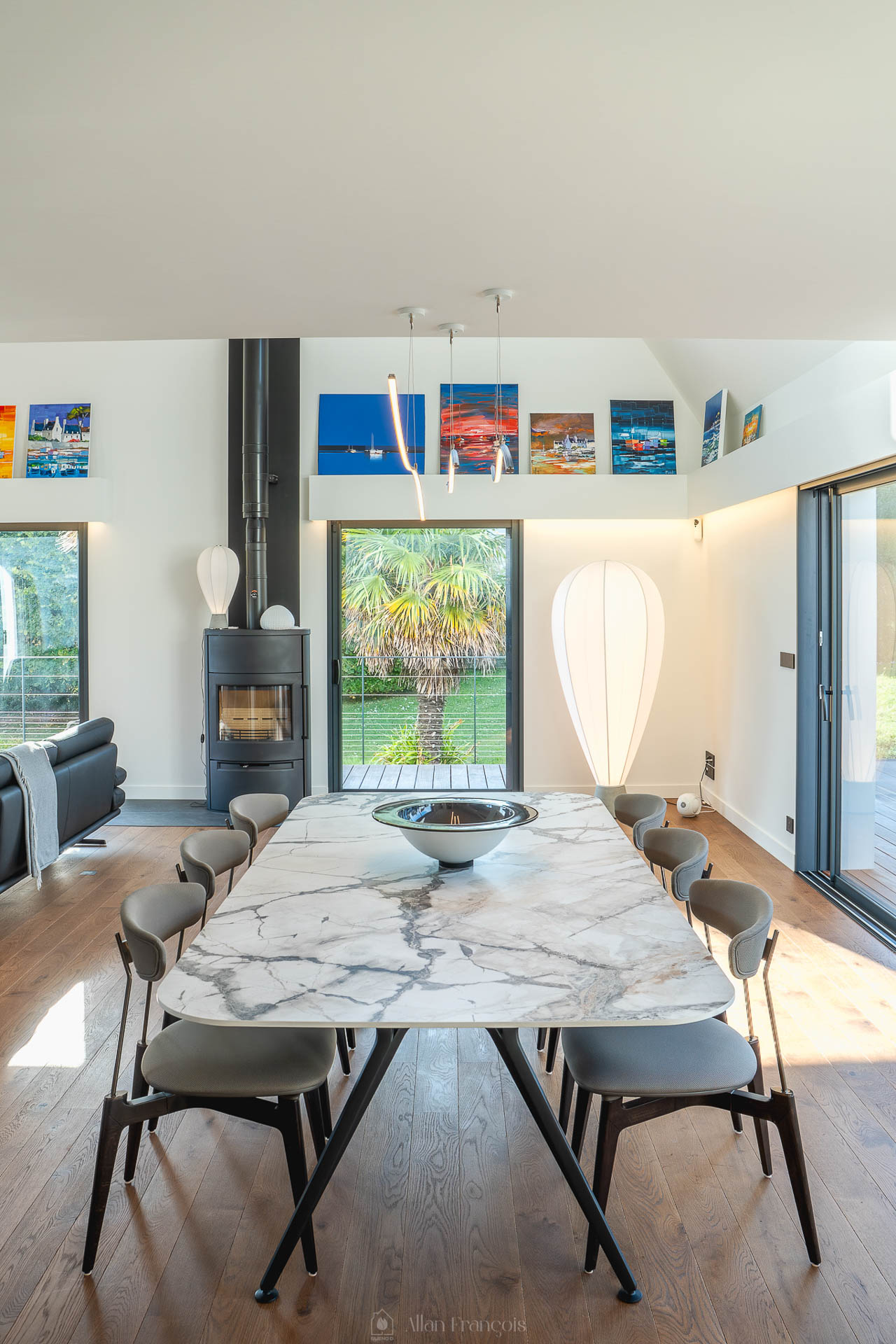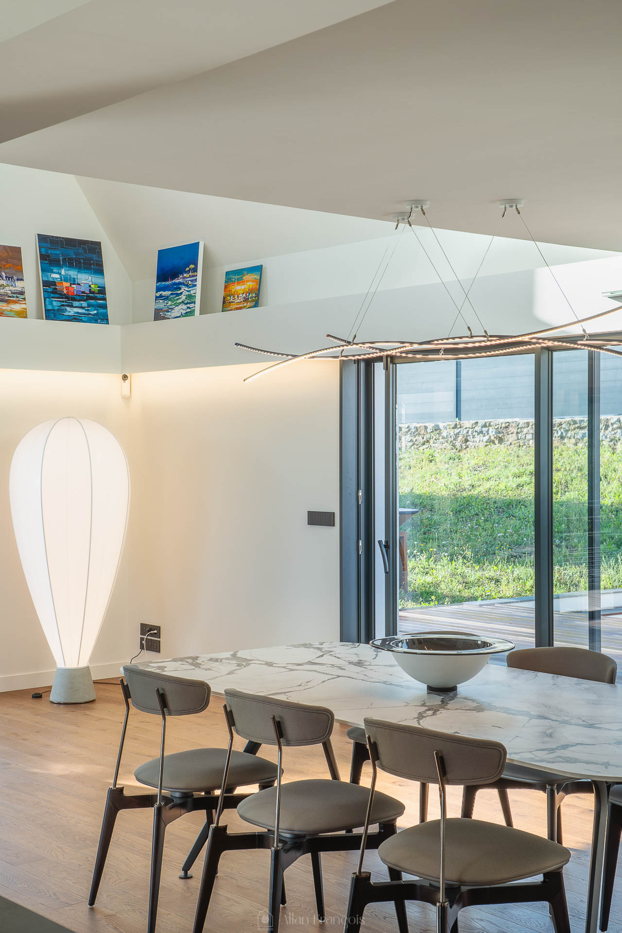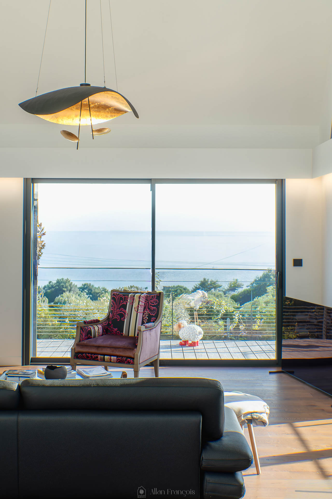 Située face à un panorama maritime exceptionnel, cette maison contemporaine a été pensée pour offrir lumière, espace et confort. Les grandes ouvertures, les matériaux chaleureux et les éléments décoratifs forts définissent une atmosphère que nos installations techniques accompagnent avec discrétion.