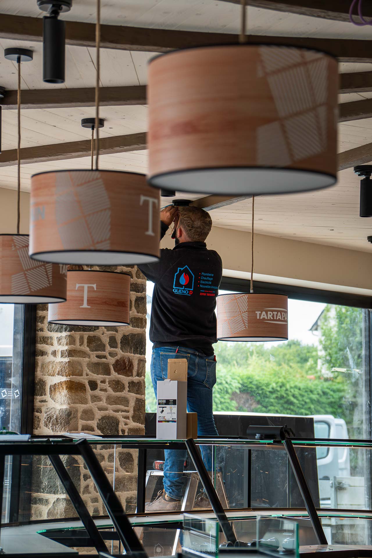 Nous avons réalisé l’ensemble des lots techniques, comprenant la plomberie, le chauffage, l’électricité, la ventilation et la climatisation. Les installations ont été conçues pour répondre aux exigences d’un commerce alimentaire, tout en s’intégrant harmonieusement à l’aménagement du lieu.