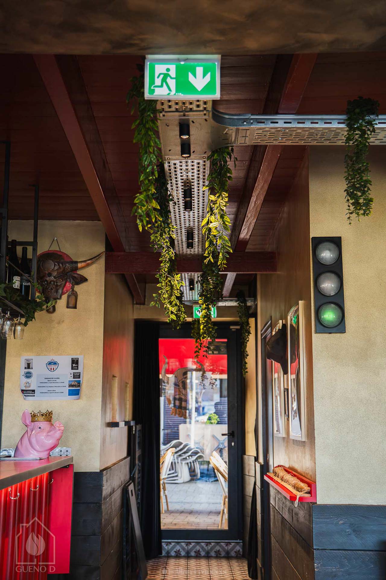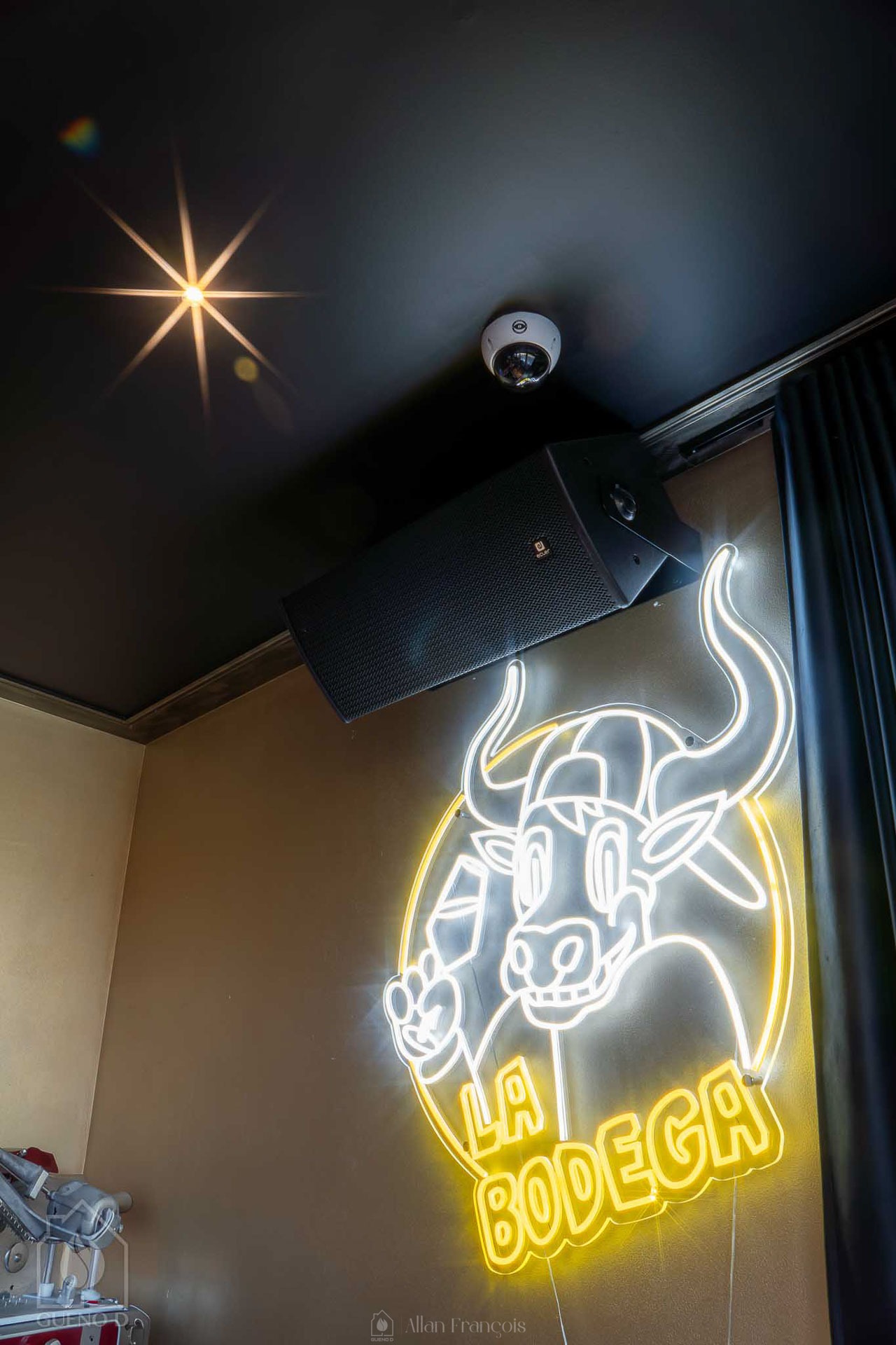 Nous sommes intervenus sur l’ensemble des installations techniques, comprenant les éclairages, les sanitaires et le chauffage. Chaque équipement a été pensé pour répondre aux contraintes d’un établissement recevant du public, tout en participant à l’ambiance générale du bar.