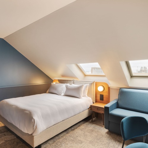 Nous sommes intervenus sur la rénovation de l’hôtel Kyriad de Trégueux, dans le cadre d’un projet mené en 2024 par le groupe Dunamis Hospitality, afin de moderniser l’établissement et améliorer le confort des clients.