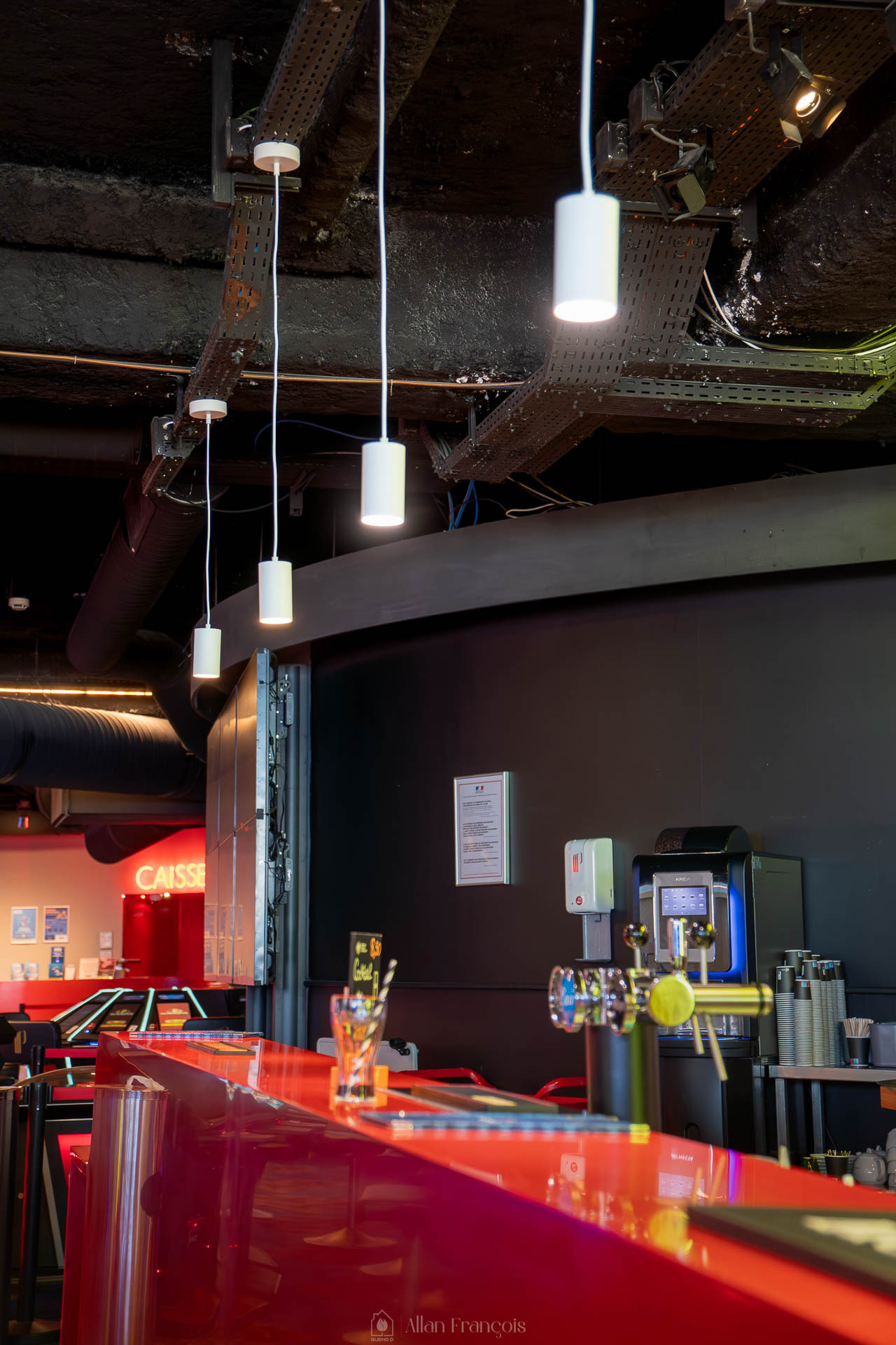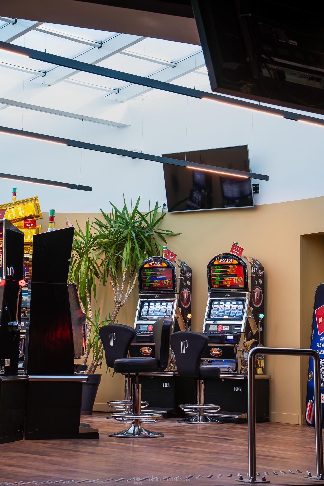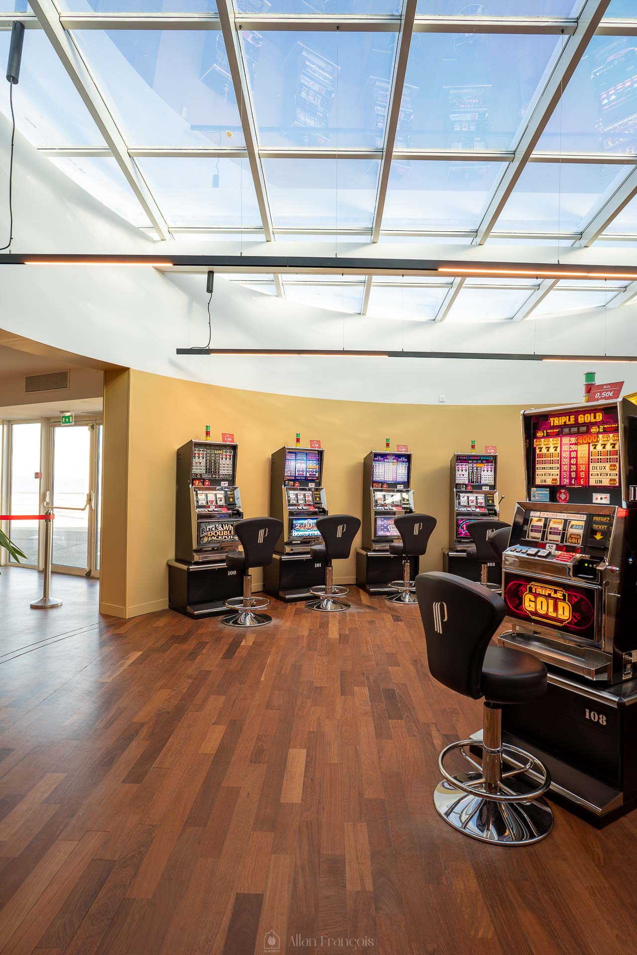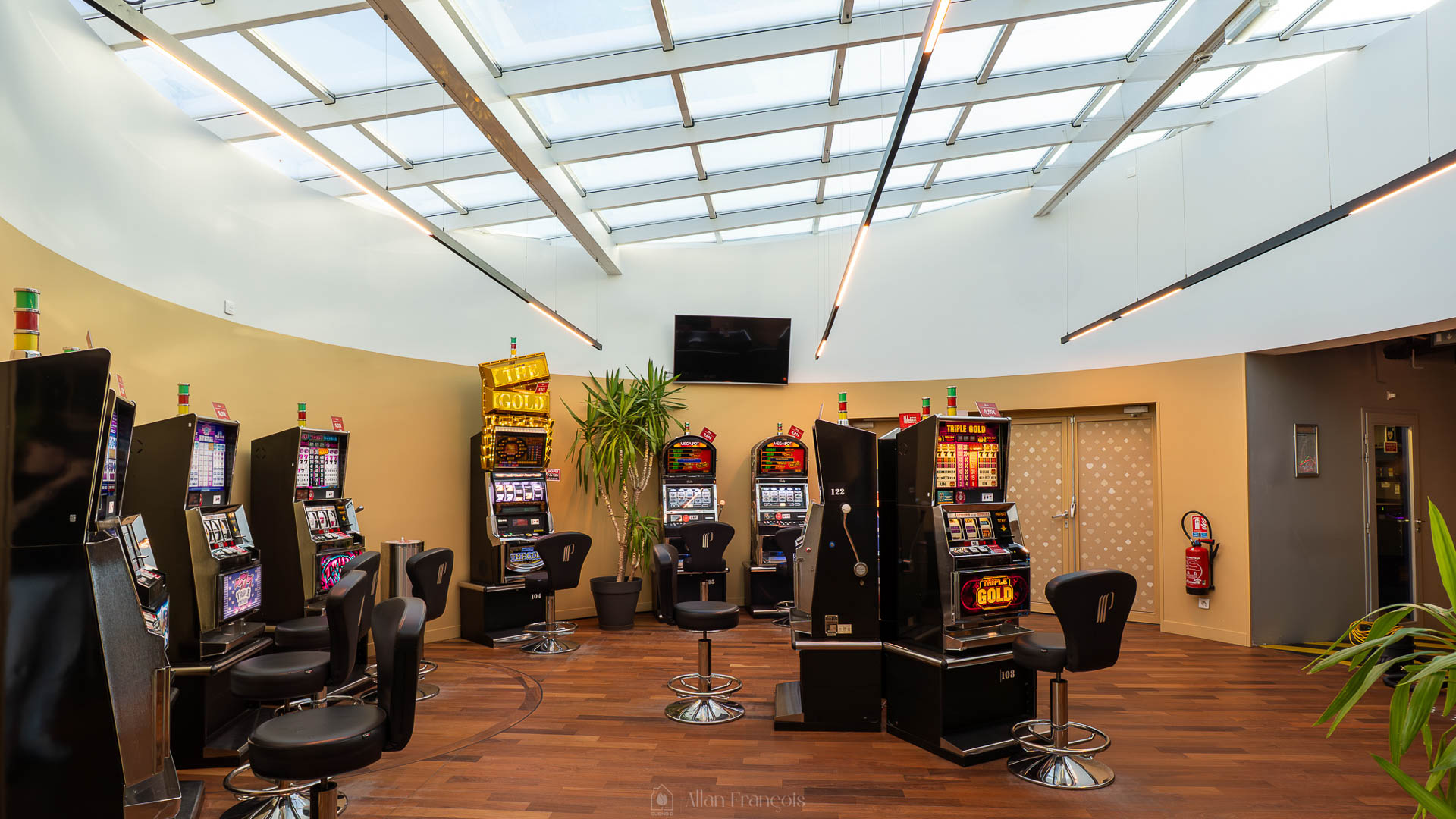 Dans la rotonde, l’accueil a été déplacé pour intégrer un nouvel espace machines. Nous avons pris en charge l’ensemble de la création électrique, ainsi que l’éclairage du nouvel accueil et de l’espace bar désormais intégré au casino. MORIN D est également intervenu sur le façonnage du bar et la pose des rideaux extérieurs sur les fenêtres en arche.