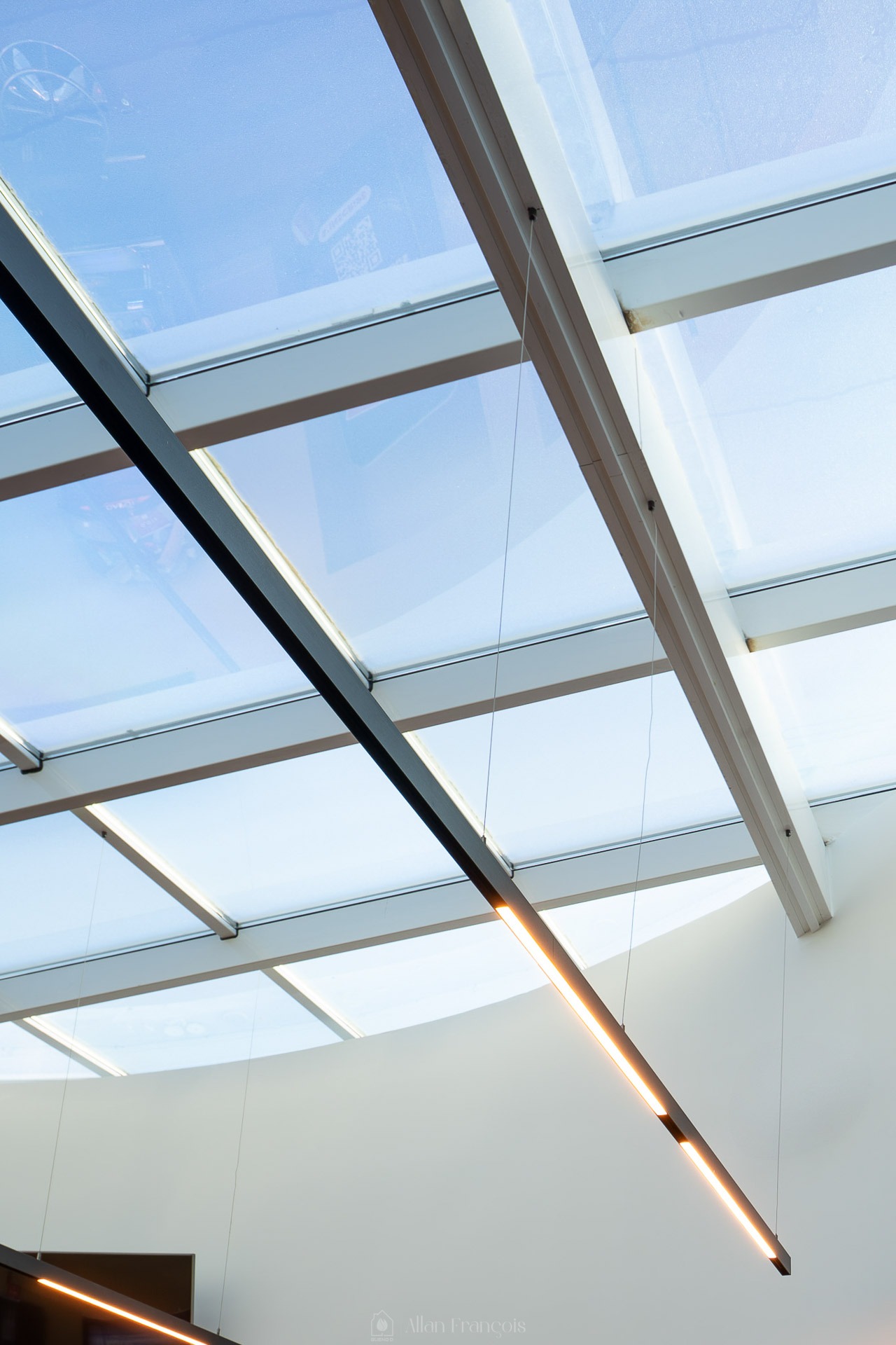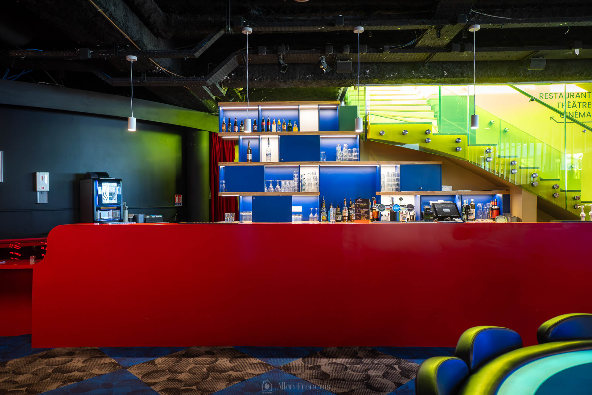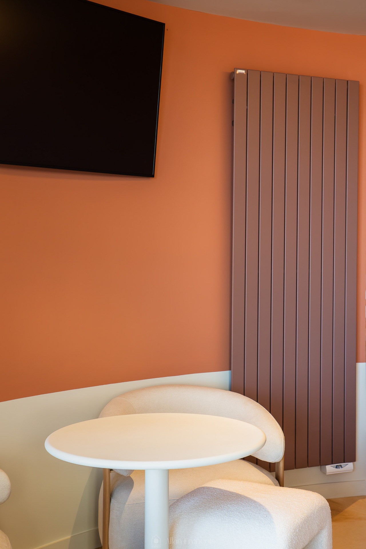 Au niveau de la brasserie, MORIN D a réalisé la création des espaces café et du nouveau salon, avec un travail spécifique sur le placo courbé et la conception d’un plafonnier sur mesure. De notre côté, nous avons entièrement repensé la mise en lumière de ces espaces et assuré les installations de chauffage, ventilation et plomberie, afin d’accompagner les nouveaux volumes et usages.
