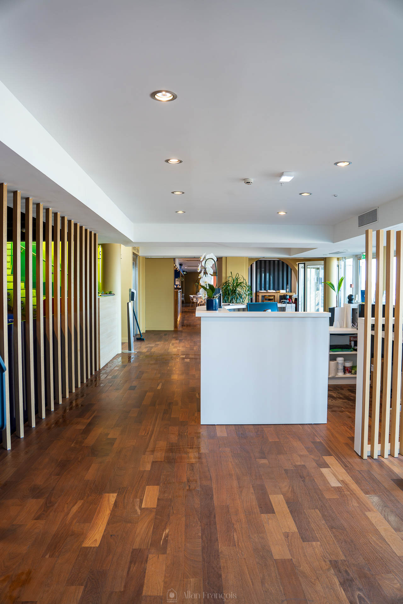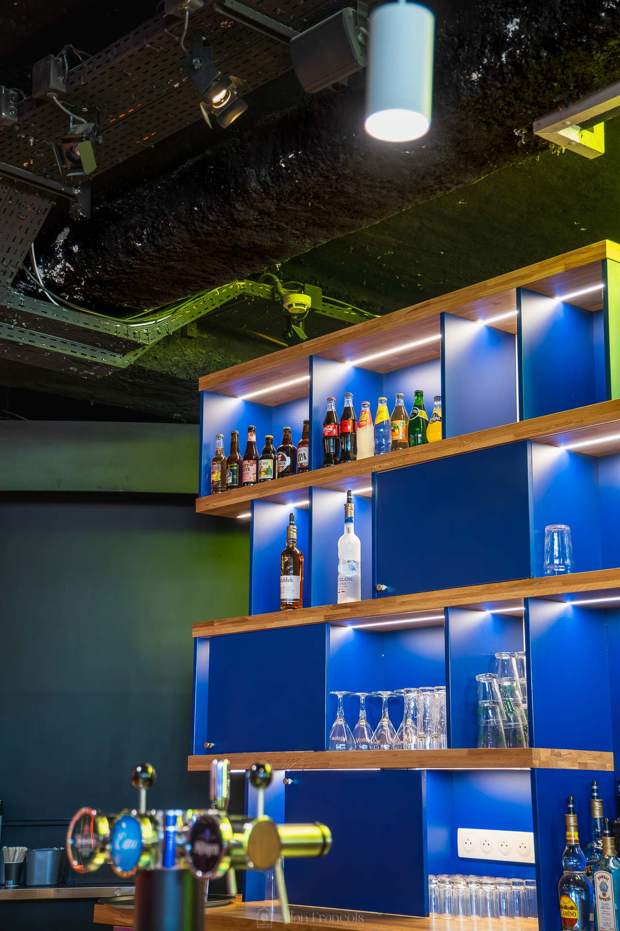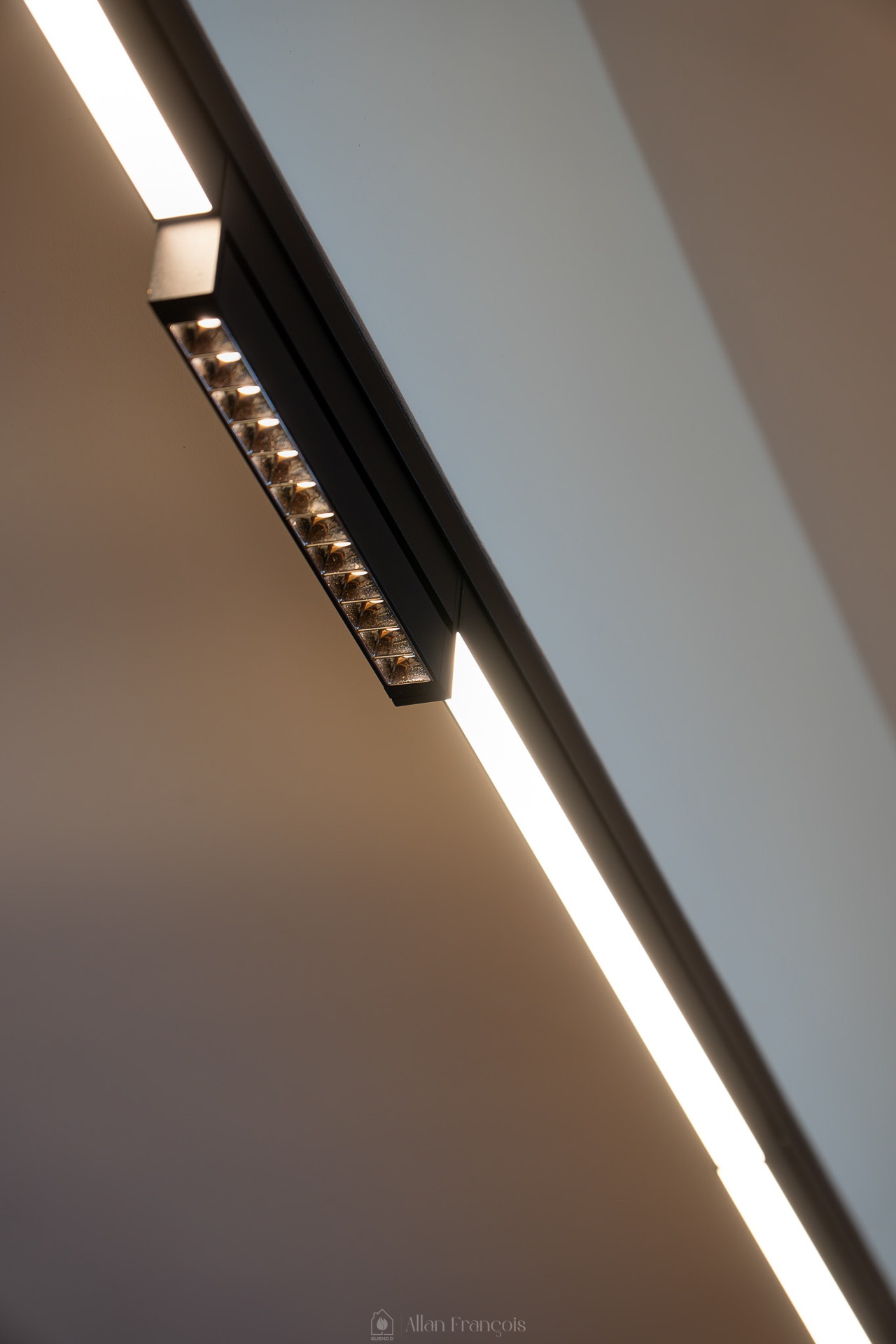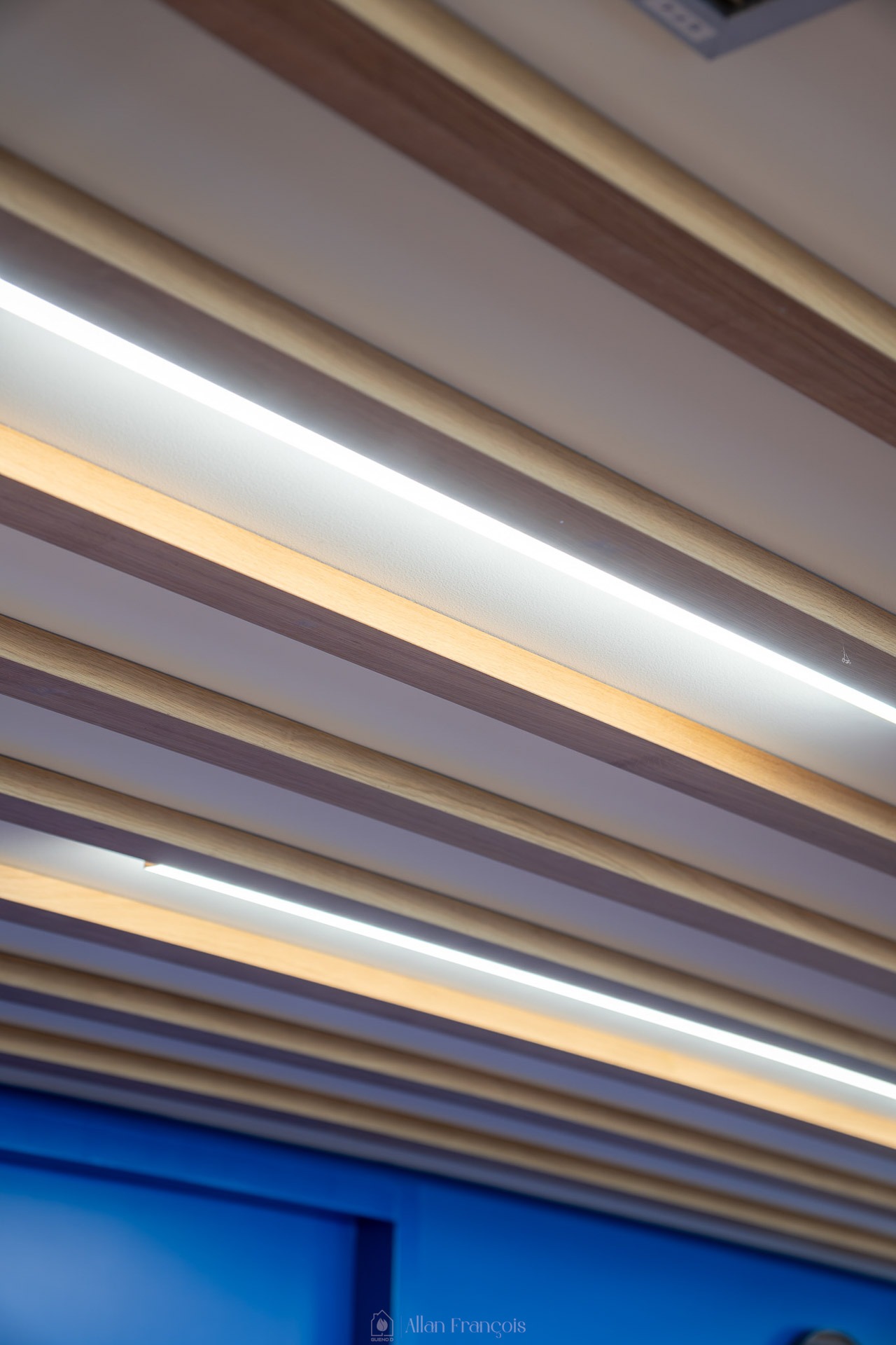Au niveau de la brasserie, MORIN D a réalisé la création des espaces café et du nouveau salon, avec un travail spécifique sur le placo courbé et la conception d’un plafonnier sur mesure. De notre côté, nous avons entièrement repensé la mise en lumière de ces espaces et assuré les installations de chauffage, ventilation et plomberie, afin d’accompagner les nouveaux volumes et usages.