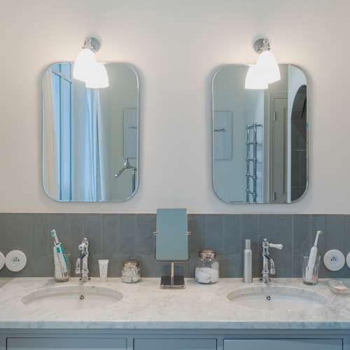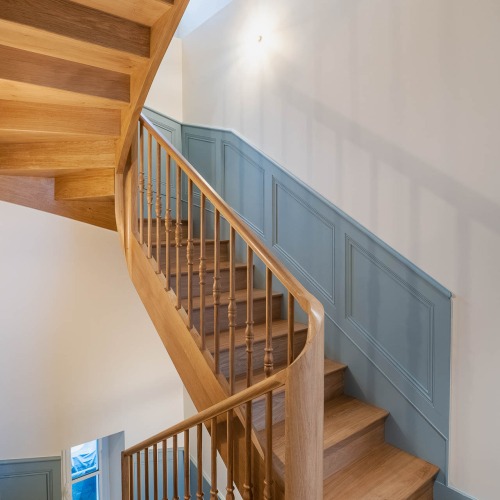 Nous sommes intervenus sur l’ensemble des lots plomberie, chauffage, ventilation et électricité, incluant la création complète des salles de bains et l’implantation électrique repensée pour accompagner la nouvelle configuration de la maison.