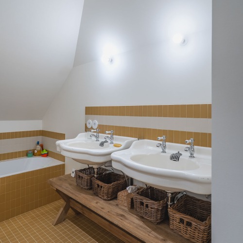 Un point fort de ce chantier réside dans la rénovation minutieuse des anciennes vasques, retravaillées à la main afin de préserver l’âme et le caractère unique de la maison, tout en les intégrant à un projet résolument contemporain.