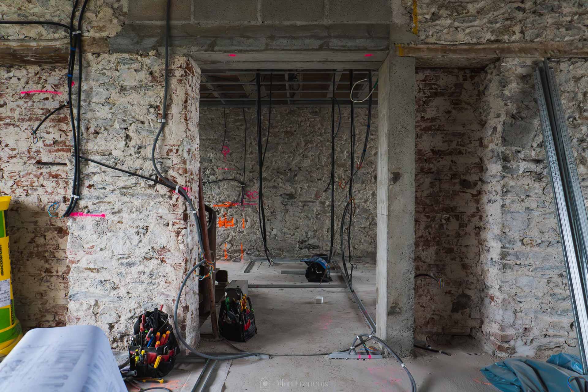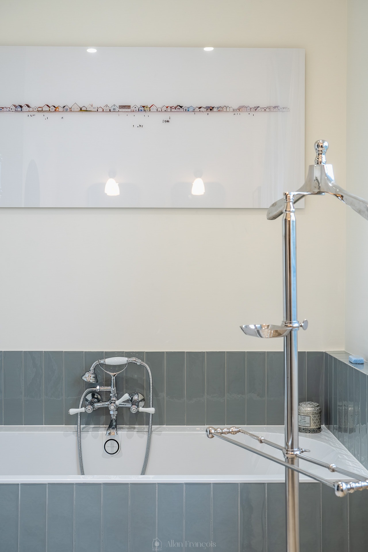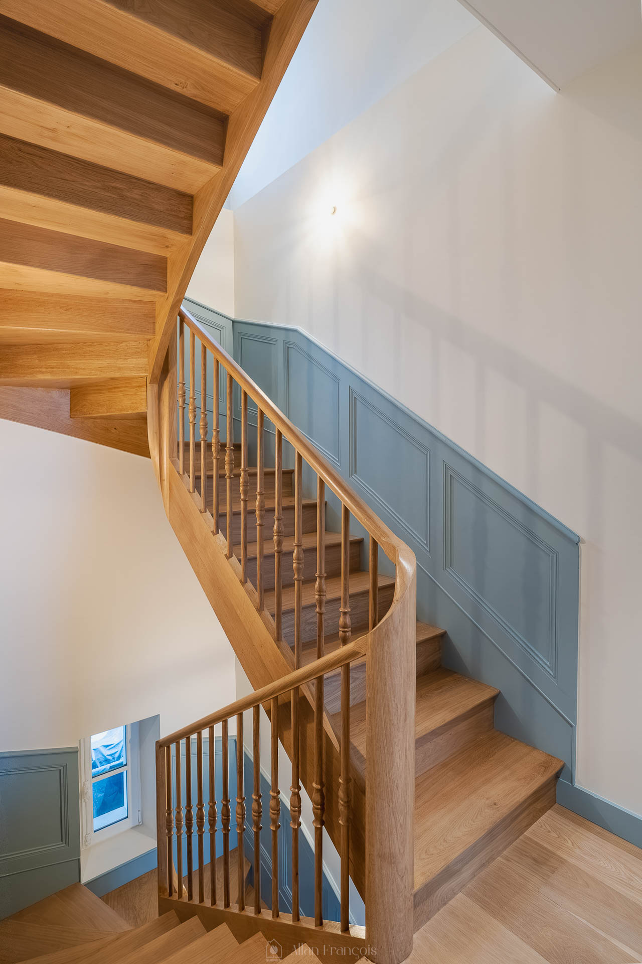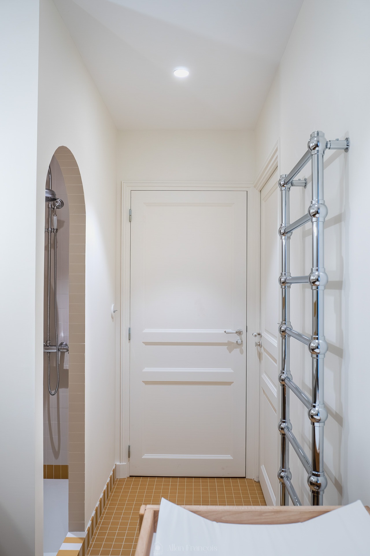 Nous sommes intervenus sur l’ensemble des lots plomberie, chauffage, ventilation et électricité, incluant la création complète des salles de bains et l’implantation électrique repensée pour accompagner la nouvelle configuration de la maison.