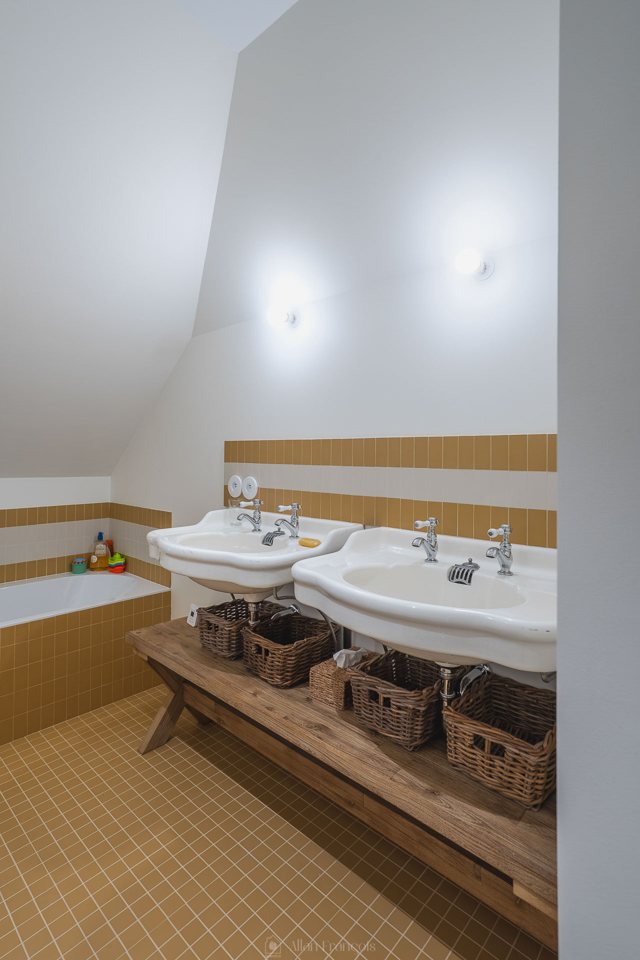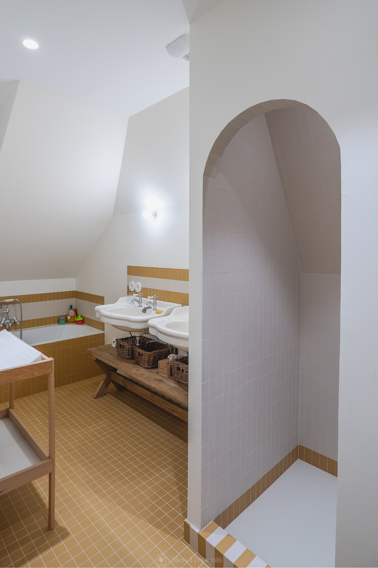 Un point fort de ce chantier réside dans la rénovation minutieuse des anciennes vasques, retravaillées à la main afin de préserver l’âme et le caractère unique de la maison, tout en les intégrant à un projet résolument contemporain.